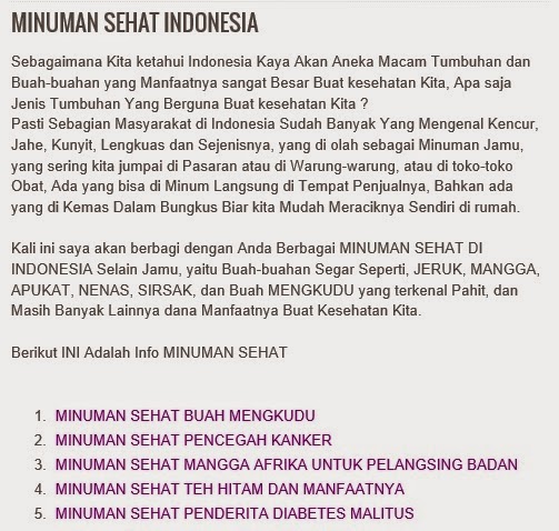 Description : MINUMAN SEHAT DAFTAR MINUMAN SEHAT INDONESIA Untuk Melihat Daftar Minuman Sehat Bisa Anda Lihat pada link Berikut PENGOBATAN KANKER DEN...